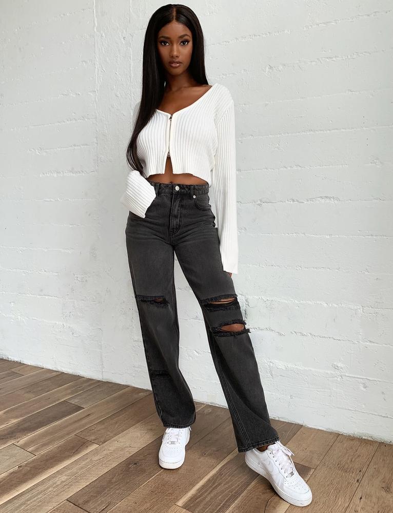 Rigid denim - these jeans will stretch out but for a comfier, slouchier fit please size up from your normal size. They run small due to non stretch denim.